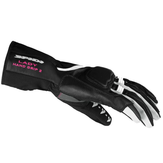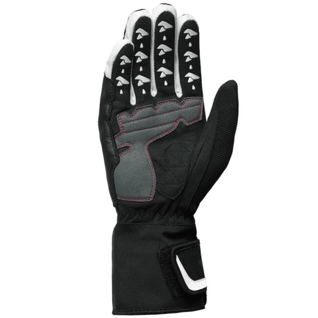 Women's Motorcycle Gloves, made of abrasion-resistant cowhide with stretch fabric and high-tenacity polyester inserts. The soft padding on the knuckles and the palm reinforced with clarino microfiber ensure the necessary safety in case of impact and abrasion. The grip inserts on the fingers enhance the driving comfort for urban and touring summer riding.