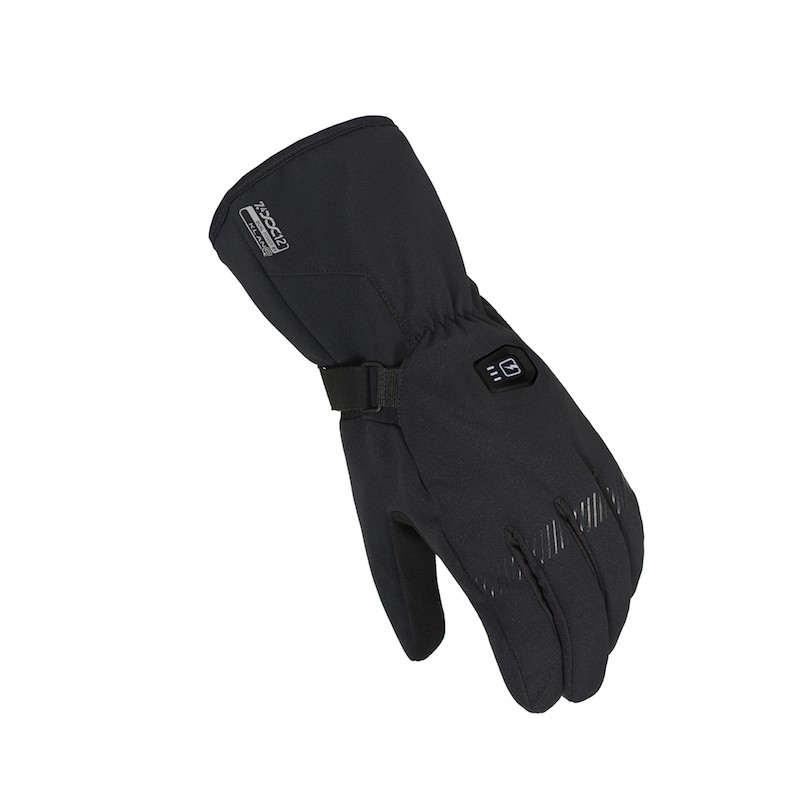 MACNA UNITE RTX HEATED GLOVES for Man or Lady, have been renewed with new features and superior quality, now more technical and with a higher yield than the previous model, ideal for motorcycles riding or winter sports. PolyTenax outer fabric for high abrasion resistance. Inside the Thinsulate padding coupled to the microfleece lining, from the back of the glove to the fingertips and turning under them, are housed some isolated micro-resistances that ensure a high thermal power in winter. The impermeability is ensured by the Raintex membrane. In the new heated glove, the left index and thumb fingers are equipped with conductive fabric to use the latest Smartphones and Navigators. The inclined velcro wrist strap sleeve improve riding comfort. This article is designed to operate in Dual Power 7.4V / 12V mode. From the button on the back of the glove(with batteri life indicator) it is possible to turn on and adjust the temperature on 4 different levels: OFF - 40% - 60% - 80% - 100%. Certified EN 13594