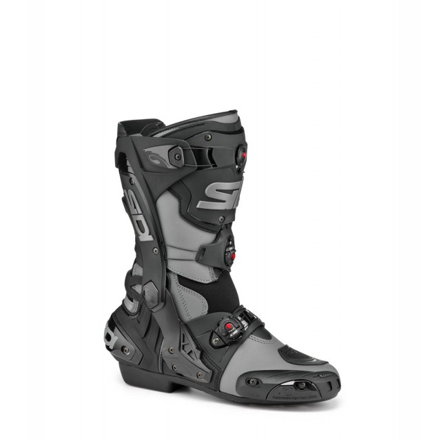 SIDI REX is an high-performance, breathable and protective motorcycle racing boot. equipped with replaceable front in PU, adjustable magnetic closures (TECNO-3) through steel cables, front and rear padded articulations and made of elastic material overmolded with polyurethane, the replaceable PU cuff is regulated by magnetic mechanism (TECNO-3 ) and micrometric strap, internal support system, sliders made of reinforced nylon and fiberglass with air intake equipped and asymmetrical heel with Shock Absorbing System. The choice of excellence for any biker who seeks a protective and breathable boot with a versatile and extremely comfortable fit.