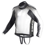Practical suit cover made of PVC coated Nylon, with groin straps to keep a precise fit and minimize the flapping effect even at speeds over 200km / h. Designed to comfortably accommodate the aerodynamic hump of track leather tracksuit.