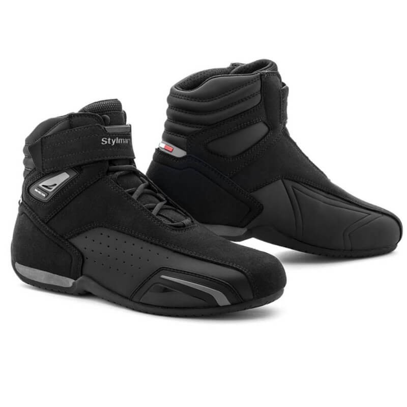 The STYLMARTIN vector air are the cooler version of the Velox shoes, enhanced with microperforated microfibre inserts in the upper, ensuring absolute breathability and comfort even in summer. The world of motorcycling and the world of rallying come together harmoniously, with its sharp and fast lines, an interplay of black hues and advanced protective features.