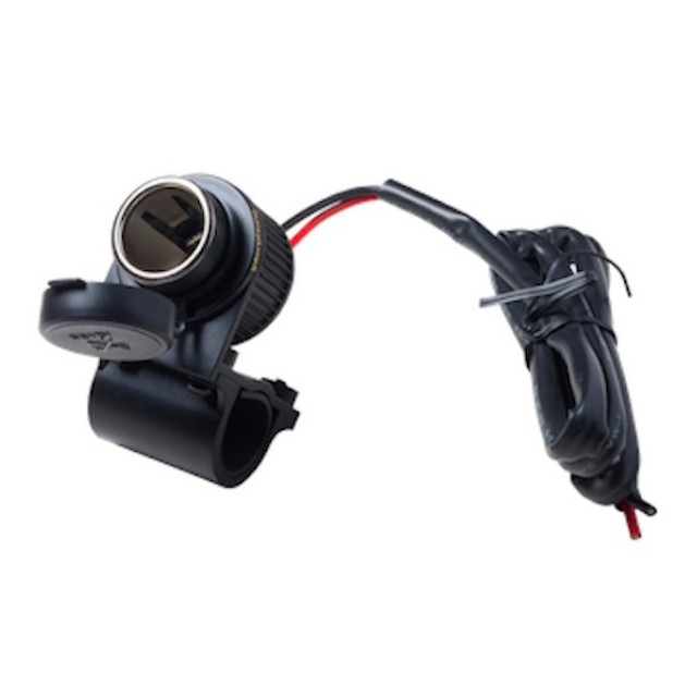 It is a tubolar handlebar power kit for motorcycles with cigarette lighter socket and protective cap. Cable length 150 cm. 15 Ah fuse.