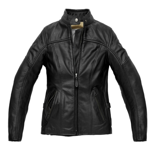 Motorcycle vintage jacket made fo buffalo leather, fully certified CE EN17092: 2017 with shoulder and elbows protectors included. This Lady version features a completely renewed conformation to better fit the shapes of female body. Even if designed for summer and mid-season use, the Rocker is prepared to mount the Spidi thermal padding and the waterproof H2out membrane for winter use.