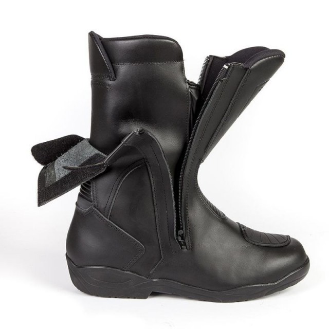 Stylmartin Syncro is ultra-lightweight and adapts itself to the shape of the leg thanks to its “layered” opening. Two full-length side zippers and two posterior openings with Velcro make the boot extremely easy to put on and finely adjustable to fit the calf. Its features include a water-resistant full grain leather upper, a waterproof and breathable lining, protections and reinforcements in the areas subject to wear and tear.