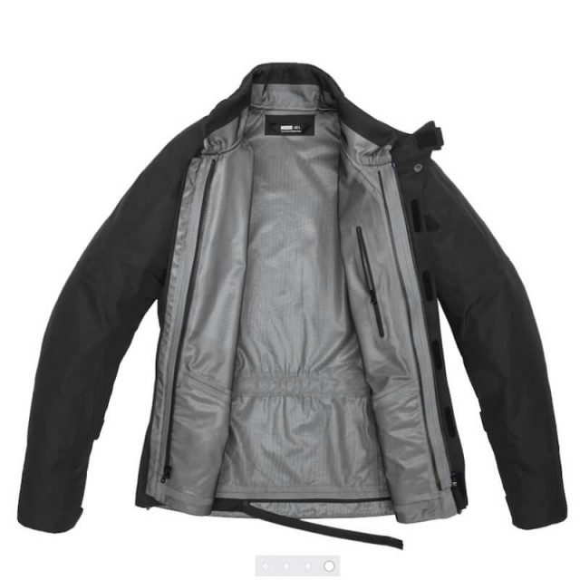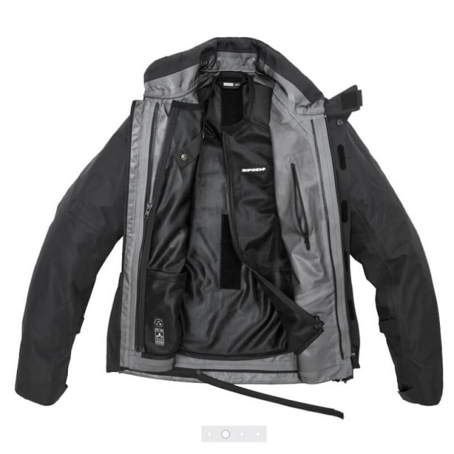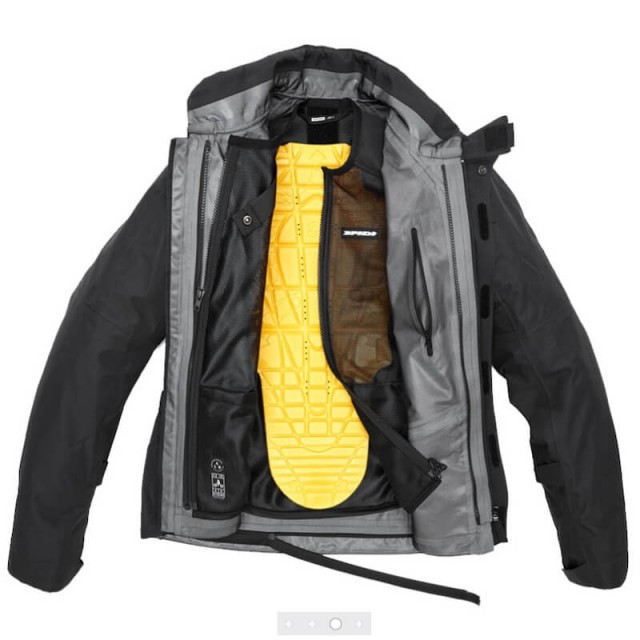 Giacca da moto che racchiude due prodotti in uno: il guscio esterno impermeabile assicura una protezione eccellente dalle intemperie, mentre l'armatura interna realizzata in cordura traforata con protezioni gomiti e spalle può essere staccata e utilizzata separatamente durante i giorni più caldi.
