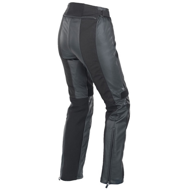 Pantaloni in pelle con protezioni certificate su ginocchia e fianchi e inserti in tessuto elasticizzato per il massimo comfort di guida touring stradale.