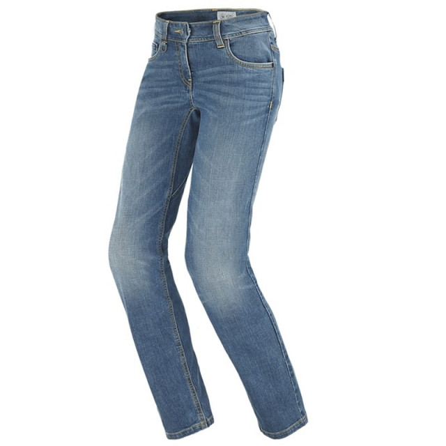Classici jeans da moto in denim elasticizzato e dalla calzata slim per il massimo comfort e il giusto look per l`utilizzo urbano su due ruote, equipaggiati con protezioni certificate sulle ginocchia.