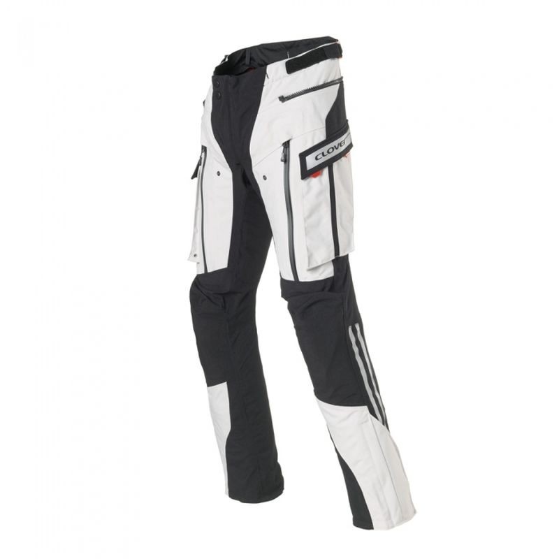 Pantaloni moto Clover Laminator Wp sono pantaloni touring tecnici a lungo raggio 100% impermeabili grazie al tessuto esterno laminto. Imbottitura termica (removibile), protezioni "CE" su ginocchia e fianchi di Livello 2, protezioni estraibili su ginocchia e fianchi
