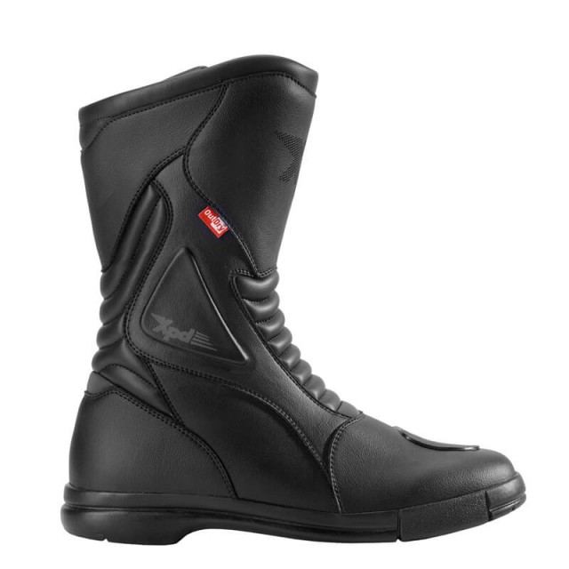 Xpd X-Trail Outdry sono stivali moto impermeabili laminati con membrana OutDry impermeabile, traspirante e frangivento, ideale per i lunghi viaggi grazie alla leggerissima struttura in microfibra interamente certificata CE EN 13634:2010, altamente resistente a tagli e abrasioni. La fodera interna in rete 3D aumenta la traspirazione e ne aumenta il comfort di calzata. I rinforzi su tallone, punta e malleolo proteggono le zone più a rischio di impatto; la soletta antitorsione riduce ulteriormente il rischio di traumi al piede. Lo speciale plantare ventilato in Air Tech aumenta ulteriormente la traspirabilità dello stivale. Gli inserti elastici sul dorso e sul retro dello stivale aumentano il comfort di guida e di camminata.