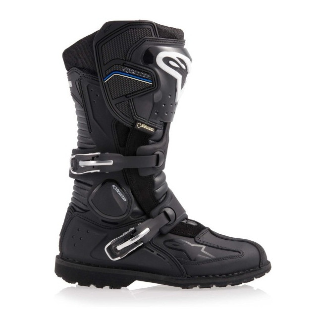 La massima espressione di Alpinestars in termini di comfort e protezione. Pensato per un utilizzo turistico adventure, ma grazie alla suola tassellata è aperto anche all' off-road leggero, il chè permette a questo stivale di raggruppare in se ben tre mondi motociclistici differenti. La sua versatilità e la membrana impermeabile e traspirante GORE-TEX rende questo capo la scelta perfetta per l'utente che ricerca uno stivale pratico per un utilizzo quattro stagioni. Le due chiusure regolabili consentono una calzata avvolgente e personalizzabile, mentre allo stesso tempo tengono la protezione del malleolo ferma e più vicina all'articolazione. Le due ampie elasticizzazioni "a fisarmonica" consentono una maggiore mobilità e rendono lo stivale morbidissimo in fase di guida. Dotato di piastra in TPU sulla tibia, rinforzo su tacco e punta, suola anti-compressione e protezione malleolo, questo stivale racchiude la massima protezione raggiungibile da uno stivale adventure toruing. Come tocco finale, l'imbocco dello stivale è stato foderato con tessuto mesh traspirante e fornito di toppa para cambio per ridurre l'usura dello stivale.