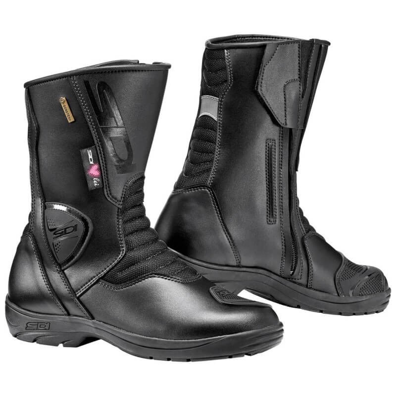 SIDI LADY GAVIA GORE è uno stivale femminile in Gore Tex studiato per l'utilizzo turistico durante le quattro stagioni dall'ottimo rapporto qualità/prezzo. Nella parte frontale è presente un inserto in cordura che ne migliora la vestibilità e permette alla membrana goretex di traspirare maggiormente durante i periodi più caldi. Anche a temperature molto basse è sufficiente una calza termica per mantenere un elevato potere coibente. Pensato esclusivamente per il pubblico turistico femminile, questo stivale è stato ridisegnato per dargli nuove forme che gli consentissero di aderire ad una conformazione del piede più affusolata rispetto a quella del pubblico maschile. Cosi da garantire sia un comfort eccellente in posizione di guida ma anche in utilizzo da passeggero e dopo moto.
